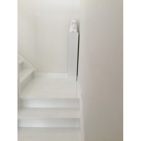 Et hvidt højglans podie har en flot udstråling og fordi det er samlet på gering, kan man ikke se nogen sammenføjninger/samlinger. Vi bruger MDF hvilket gør at podiet kan belastes med 100 kg og er let at rykke rundt med. De hvide søjler i højglans er lakeret i farvekoden RAL 9016.