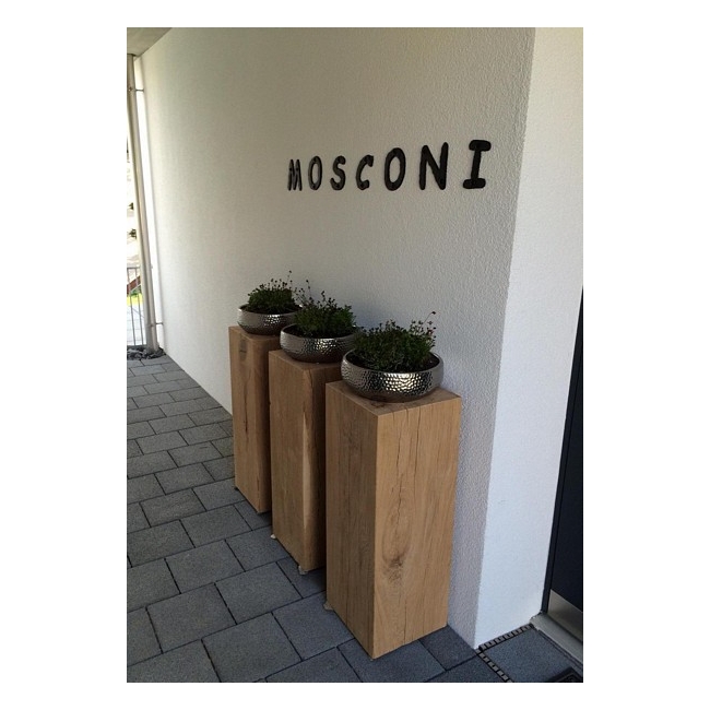 Egetræ er et naturligt materiale og hver stamme vi bruger er unik. Derfor er det ikke muligt at garantere eksakte længde - og bredde mål og en 100% firkantet form. Til eksempel vil en bestilling på et podie i størrelsen på 30 x 30 cm i praksis kunne være 28,8 x 29,3 cm. Afvigelse fra angivne mål er maksimal 10%.. Når du bestiller mere end ét egetræspodie skal du derfor være opmærksom på at podierne aldrig er identiske, takket være vores leverandør, moder natur. Højdemål kan vi altid garantere som bestilt.