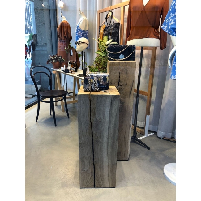 Egetræ er et naturligt materiale og hver stamme vi bruger er unik. Derfor er det ikke muligt at garantere eksakte længde - og bredde mål og en 100% firkantet form. Til eksempel vil en bestilling på et podie i størrelsen på 30 x 30 cm i praksis kunne være 28,8 x 29,3 cm. Afvigelse fra angivne mål er maksimal 10%.. Når du bestiller mere end ét egetræspodie skal du derfor være opmærksom på at podierne aldrig er identiske, takket være vores leverandør, moder natur. Højdemål kan vi altid garantere som bestilt.