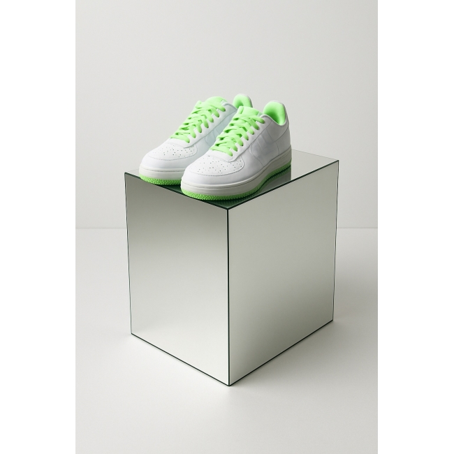 Et spejlpodie er meget mere end blot en base. Den reflekterende spejloverflade gengiver lys, farver og former fra omgivelserne, hvilket gør, at dit objekt kan opleves fra alle vinkler på en ny og spændende måde. Den samlede visuelle oplevelse forstærkes, og vil tiltrække endnu flere blikke. I butiksvinduer, på messer eller som udstillingsdisplay skaber et spejlpodie desuden en mere rummelig fornemmelse. Podiet integreres subtilt i omgivelserne, samtidig med at det udstillede objekt fremstår endnu mere spektakulært. Denne effekt gør blandt andet dette podie ideelt til sko, accessories eller eksklusive produkter, der virkelig skal skille sig ud.